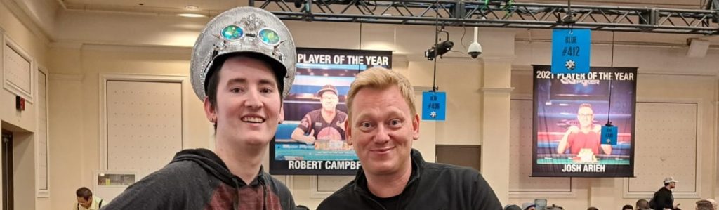 Das Main Event wurde für einige Minuten unterbrochen. Es stellte sich heraus, dass eine komplette Unterzuckerung der Grund für den Blackout war. Mit einem zuckerhaltigen Glas O-Saft wurde er wieder aufgepäppelt, und nach gut 10 Minuten saß er wieder auf seinem Platz. Ich konnte aber beobachten, dass er in den ersten 20 Minuten noch nicht wirklich auf der Höhe war. Mittlerweile war auch seine Mutter wieder zurück, und ich bekam mit, wie der Turnierdirektor ihr mitteilte, dass sie Cody aus medizinischen Sicherheitsgründen aus dem Turnier nehmen würden, sollte sich die Situation wiederholen.