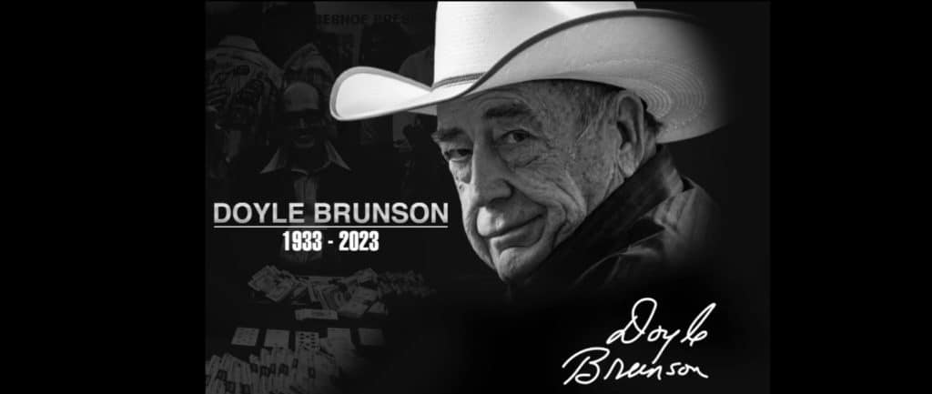 Wir verabschieden uns von einer außergewöhnlichen Ikone und werden immer daran denken, welch tiefgreifenden Einfluss er auf die Pokerwelt hatte. Wir drücken hiermit unsere tiefste Dankbarkeit für seinen Beitrag zur Entwicklung von Poker als Sport und Entertainment aus, werden uns immer an die Auftritte in Sendungen wie High Stakes Poker und seine Erfolge bei der WSOP erinnern. Unvergessen bleibt die „Doyle Brunson Hand“ T-2 (eine Zehn und eine 2), mit der „Texas Dolly“ 1976 und 1977 in zwei aufeinanderfolgenden Jahren den Main Event der World Series of Poker mit einem Full House gewann.