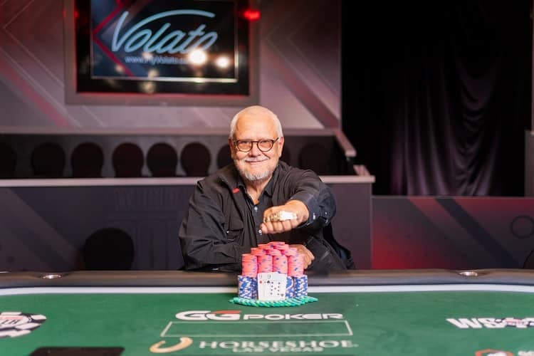 2023 sollte jedoch etwas ganz Besonderes passieren. Klaus bekommt einen Lauf beim Seniors-Event. Er übersteht Tag1 wie auch Tag 2 des Events. Und sitzt auf einmal am Final Table dieses riesigen Teilnehmerfeldes. $35.377 hat er zu diesem Zeitpunkt bereits sicher. Mehr, als er in allen anderen Turnieren zusammen gewonnen hat. Doch die Reise war noch nicht zu Ende. Ein ums andere Mal kann er auch an Tag 3 wichtige Coinflips für sich entscheiden und sich so einen Platz unter den letzten 5 Spielern sichern, die dann an Tag 4 zurückkommen um den Super-Senior Weltmeister und das begehrte Bracelet ausspielen. Zu diesem Zeitpunkt hat er bereits knapp 100.000$ sicher.