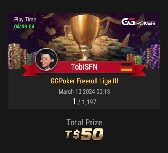 An den einzelnen Spieltagen (jeden Samstag und Dienstag um 20 Uhr) werden zusätzlich T$625 auf die ersten 75 Plätze verteilt. Alle wichtigen Zahlen findet ihr auf der Homepage unter ‚Turniere‘ > ‚Freeroll Liga‘.