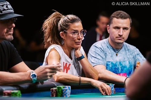 Die letzte Frau im Feld ist Leo Margets mit 6.400.000 Chips. Die Spanierin hat damit zum zweiten Mal in ihrer Karriere Tag 7 beim Main Event erreicht. 2009 belegte sie am Ende Platz 27. Im Spiel bleibt auch Greg Merson, der Champion von 2012. Mit 3.025.000 Chips zählt der US-Amerikaner aber zu den Shortstacks. Gleiches gilt für den Briten William Kassouf (2.850.000), der gegen Schulze knapp vor dem Aus stand. Nach Preflop-All-In traf der Deutsche mit A♥J♠ gegen 10♣10♠ am Turn einen Drilling, doch Kassouf riverte ein viertes Kreuz zum Flush.