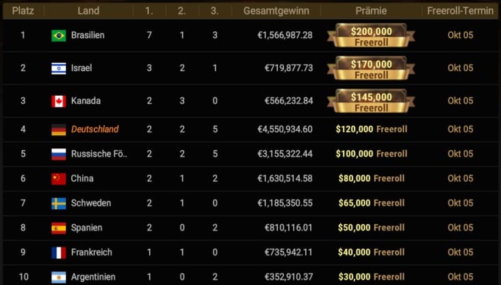 | 1 | Benjamin Rolle | Deutschland | $3.900.707 * |