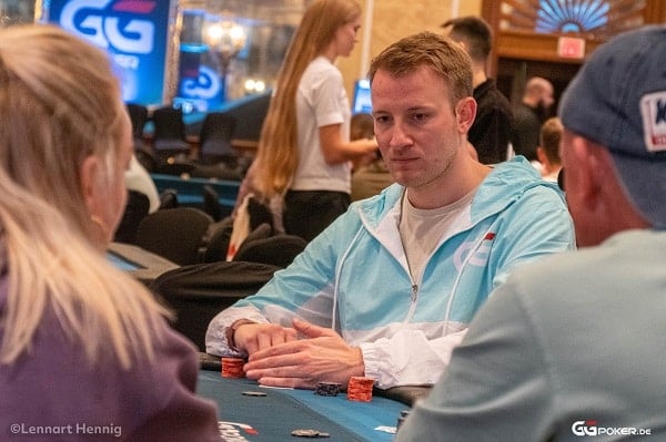 Hier schein es zunächst so, als ob der Lauf enden sollte. Doch mit dem nötigen Glück setzte sich der selbstständige Finanzberater in einem mit Weltklassespielern gespickten Feld (insgesamt 43 Entries), darunter der US-Amerikaner David Peters sowie die Kanadier Daniel Dvoress und Matthew Stumpf, tatsächlich durch. Bei noch sieben Spielern sorgte er mit dem Bustout des deutschen Pros Christian Rudolph sogar für das Platzen der Moneybubble und schaffte den Sprung in den zweiten Spieltag.