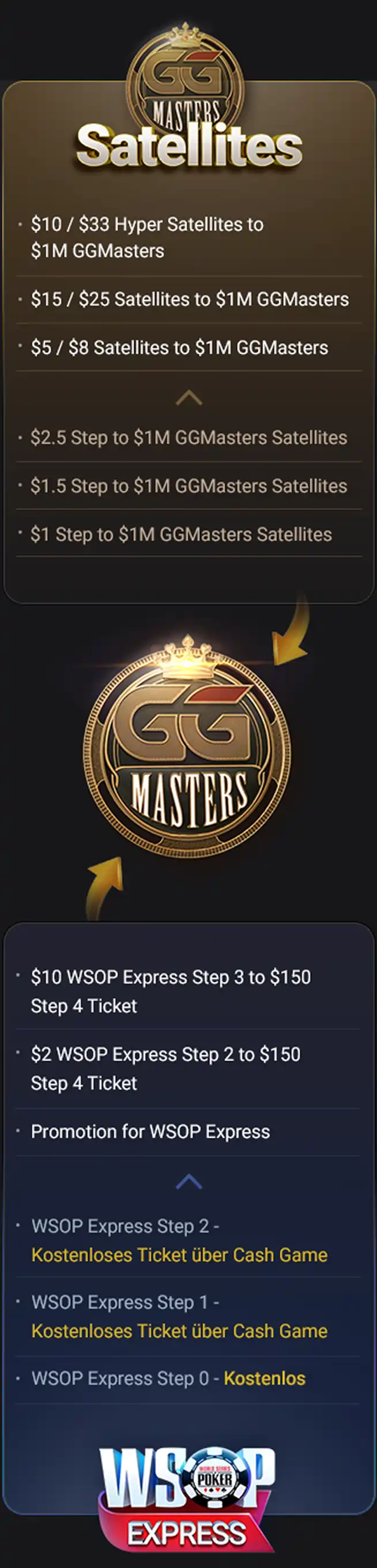- Spieler werden automatisch für die Aktion angemeldet, sobald das GGMasters $150 abgeschlossen ist und die endgültige Platzierung bestätigt wurde.